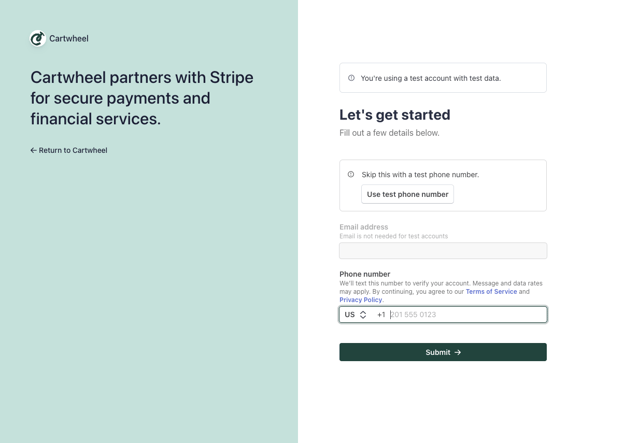 3. Complete the form to register your account, creating a sync with Cartwheel.