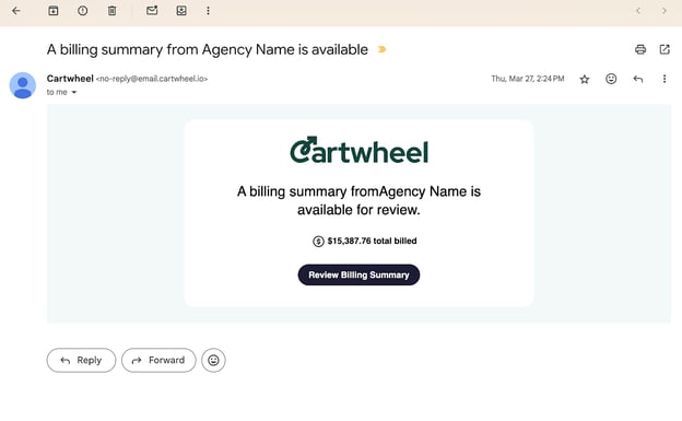 Billing Summaries in Cartwheel are documents issued by your agency summarizing the upcoming charges for goods or services provided.
