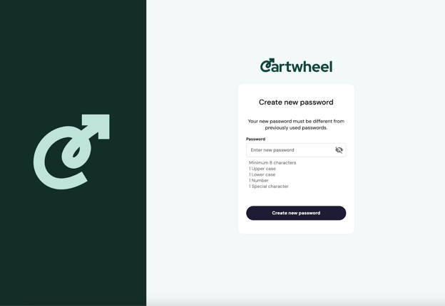 You will be taken to the reset password screen. Set a new password that meets all the requirements and then click the “Create New Password” button. Make sure that the new password you are creating is not the same as any of your previously used passwords.