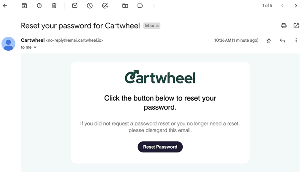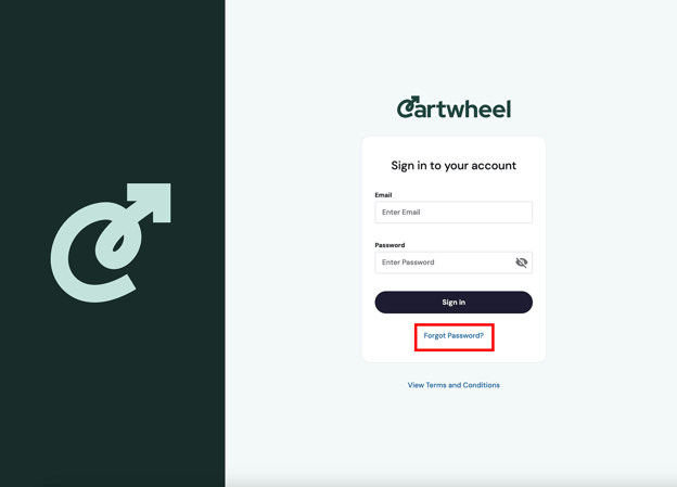 You will land on the reset password screen. On this screen, enter the email address used for your Cartwheel account and click “Submit.”